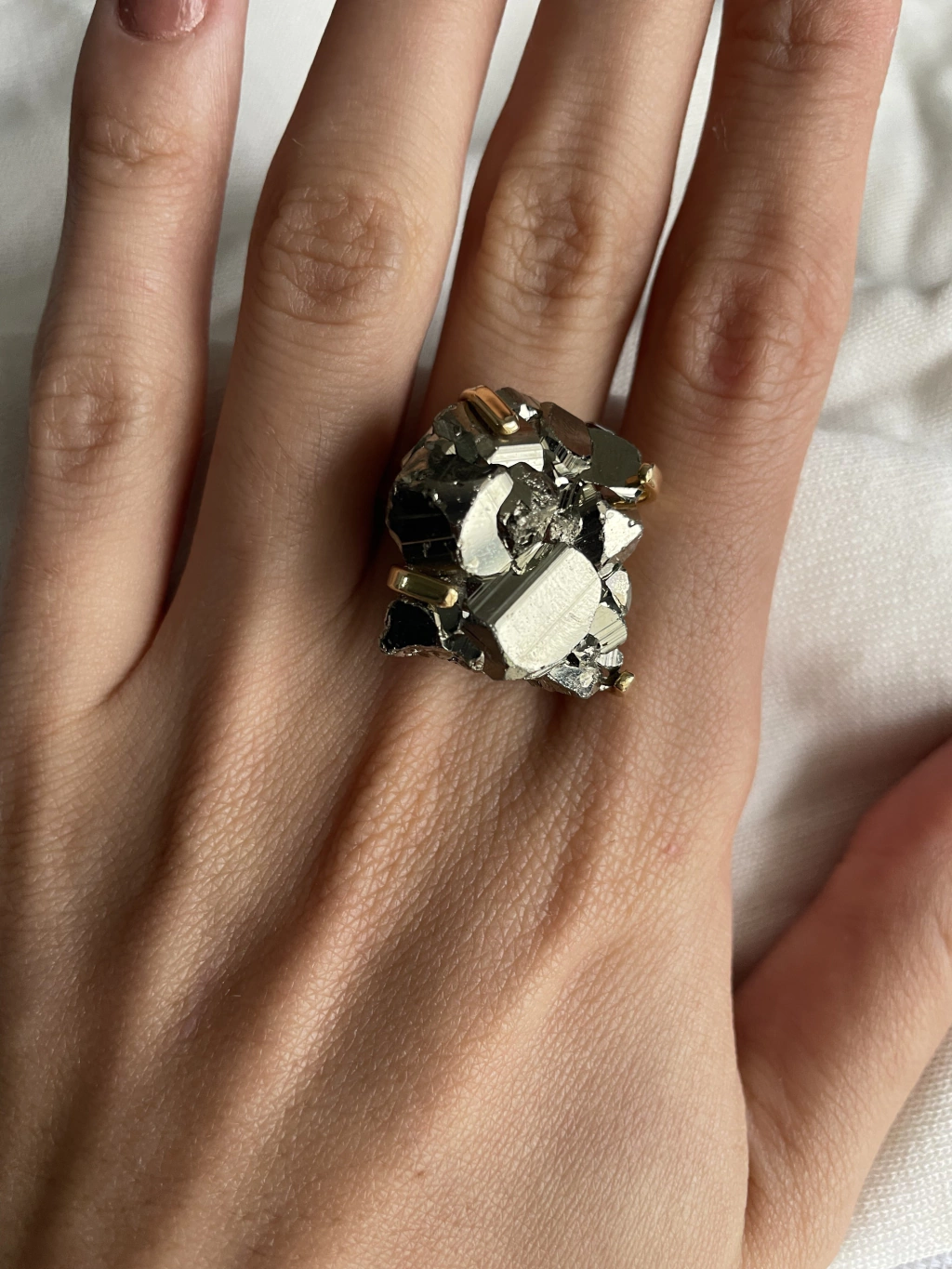 Pirita: pureza e criatividade. Sendo ótima pedra para desbloquear a criatividade de modo sincero e intuitivo.